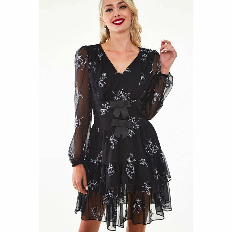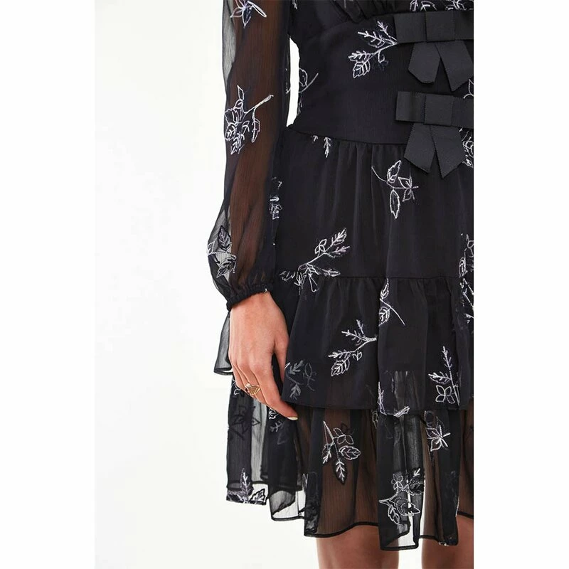 – Embroidered floral and leaves pattern